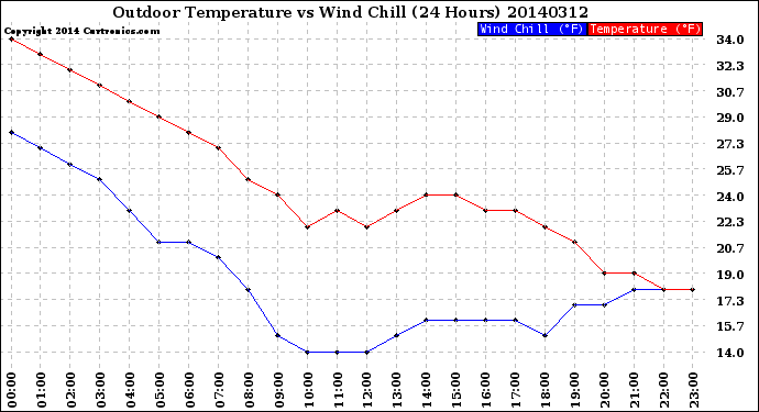 Milwaukee Weather -- 20140312 Outdoor Temperature