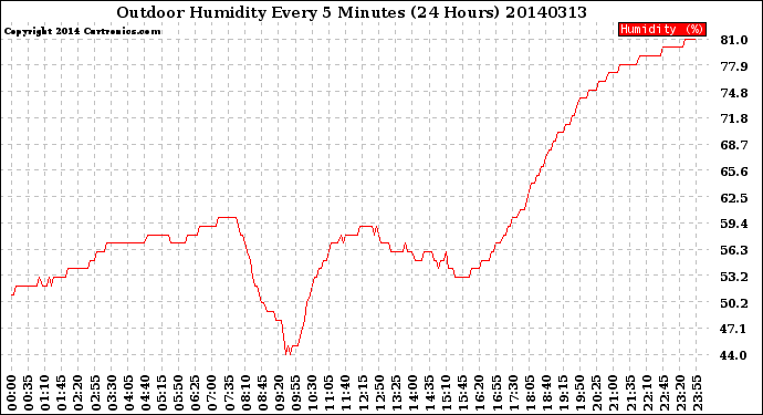 Milwaukee Weather -- 20140313 Outdoor Humidity