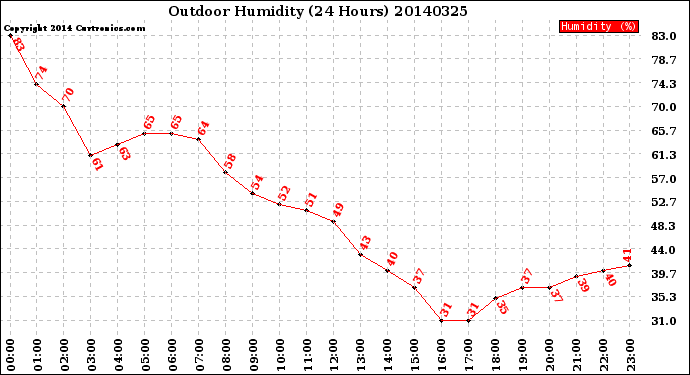Milwaukee Weather -- 20140325 Outdoor Humidity