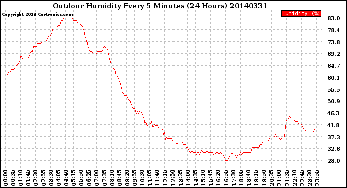 Milwaukee Weather -- 20140331 Outdoor Humidity