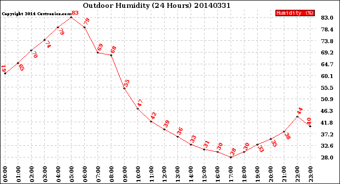 Milwaukee Weather -- 20140331 Outdoor Humidity