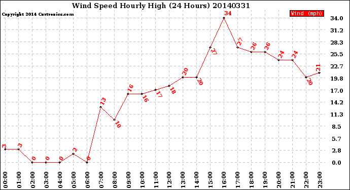 Milwaukee Weather -- 20140331 Wind Speed