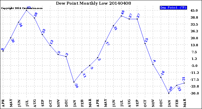 Milwaukee Weather -- 20140408 Dew Point