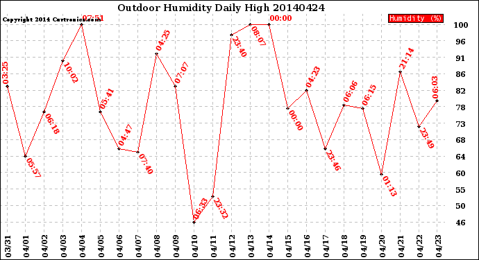 Milwaukee Weather -- 20140424 Outdoor Humidity