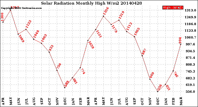 Monthly High W/m2 -- From curtronics.com by Curt Blank