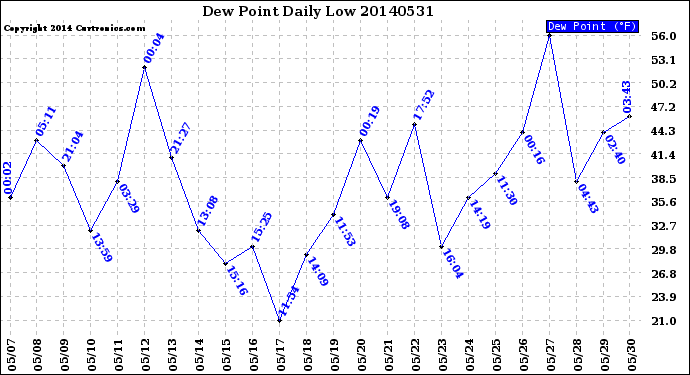 Milwaukee Weather -- 20140531 Dew Point
