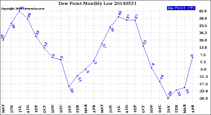 Milwaukee Weather -- 20140531 Dew Point