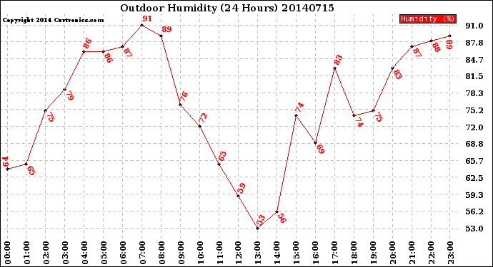 Milwaukee Weather -- 20140715 Outdoor Humidity