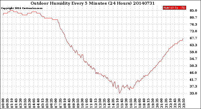 Milwaukee Weather -- 20140731 Outdoor Humidity