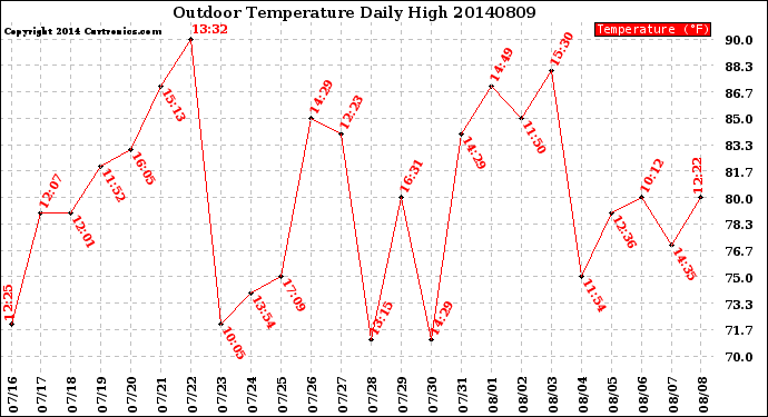 Milwaukee Weather -- 20140809 Outdoor Temperature