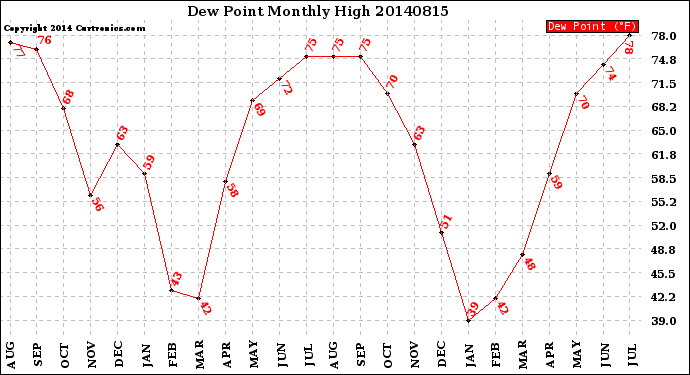 Milwaukee Weather -- 20140815 Dew Point