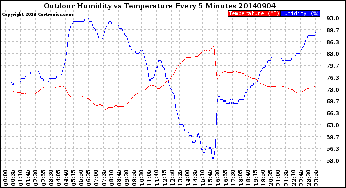 Milwaukee Weather -- 20140904 Outdoor Humidity