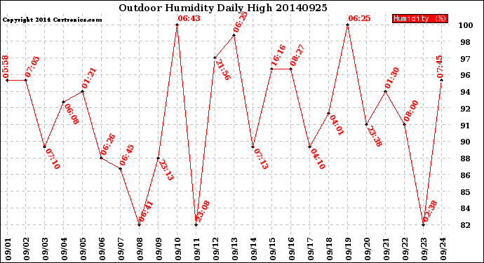 Milwaukee Weather -- 20140925 Outdoor Humidity