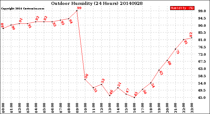 Milwaukee Weather -- 20140928 Outdoor Humidity