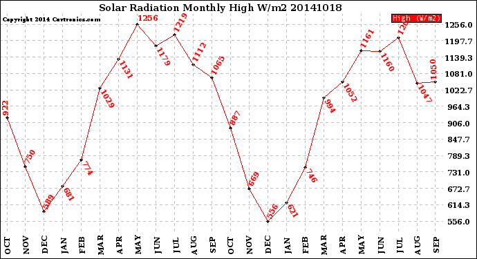 Monthly High W/m2 -- From curtronics.com by Curt Blank