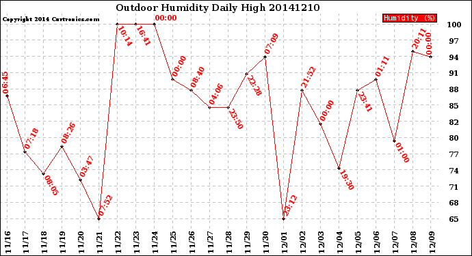 Milwaukee Weather -- 20141210 Outdoor Humidity