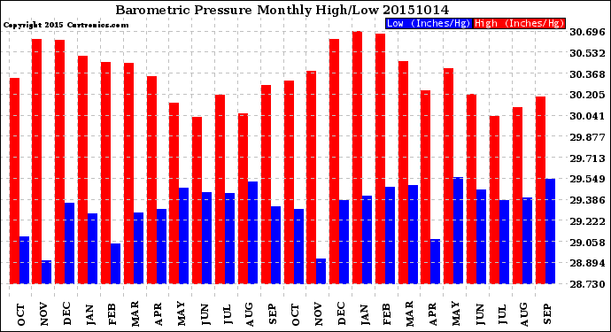 Milwaukee Weather -- 20151014 Barometric Pressure