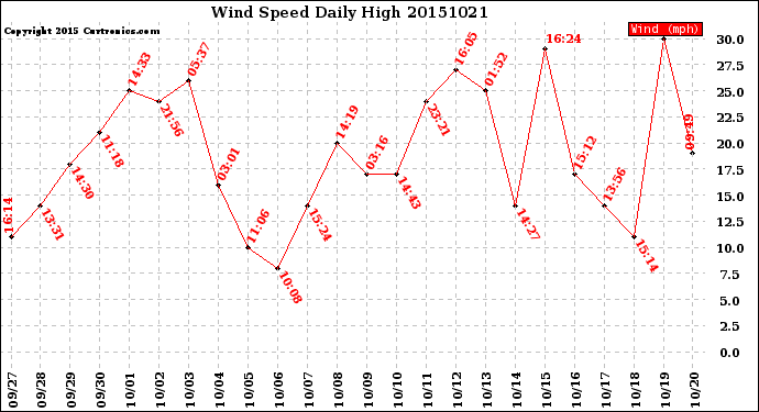 Milwaukee Weather -- 20151021 Wind Speed