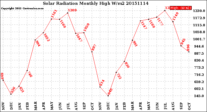 Monthly High W/m2 -- From curtronics.com by Curt Blank