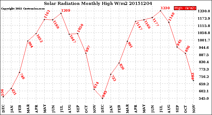 Monthly High W/m2 -- From curtronics.com by Curt Blank
