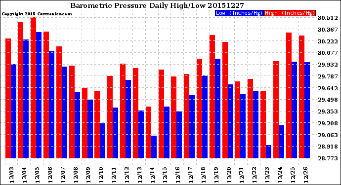 Milwaukee Weather -- 20151227 Barometric Pressure