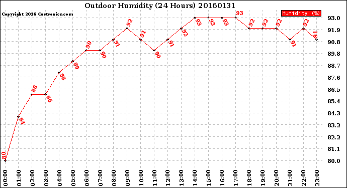 Milwaukee Weather -- 20160131 Outdoor Humidity