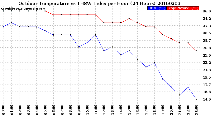 Milwaukee Weather -- 20160203 Outdoor Temperature