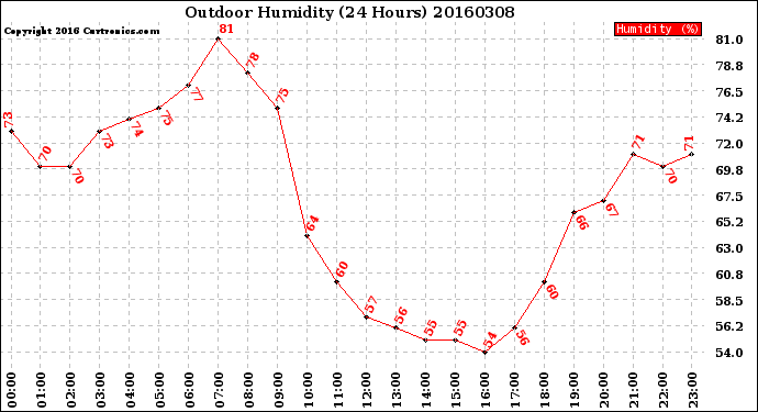 Milwaukee Weather -- 20160308 Outdoor Humidity