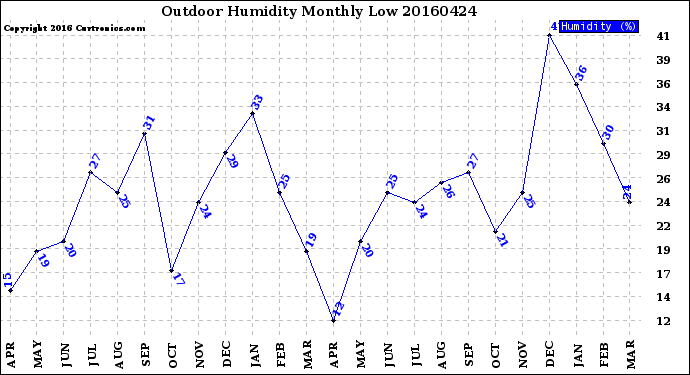 Milwaukee Weather -- 20160424 Outdoor Humidity