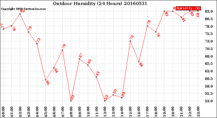 Milwaukee Weather -- 20160531 Outdoor Humidity