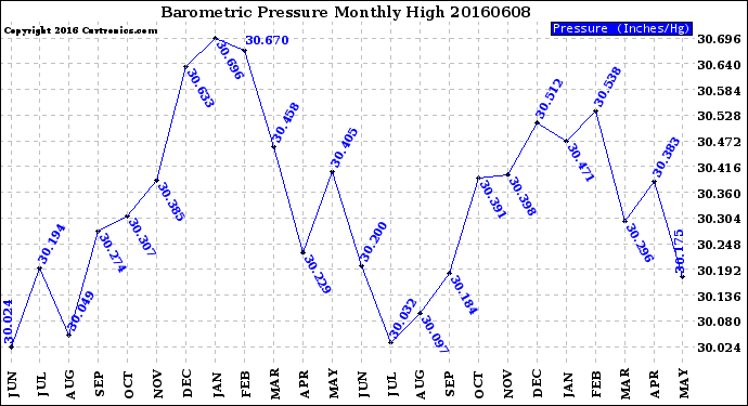 Milwaukee Weather -- 20160608 Barometric Pressure