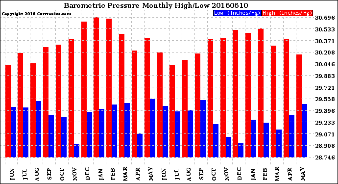 Milwaukee Weather -- 20160610 Barometric Pressure