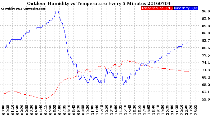 Milwaukee Weather -- 20160704 Outdoor Humidity