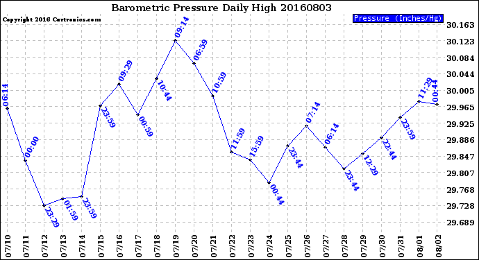 Milwaukee Weather -- 20160803 Barometric Pressure
