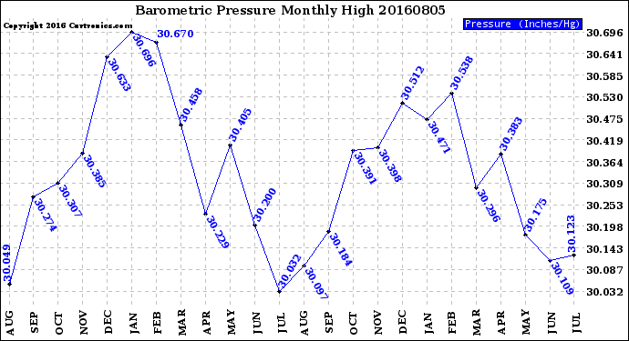 Milwaukee Weather -- 20160805 Barometric Pressure