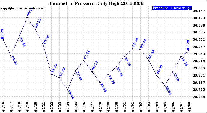 Milwaukee Weather -- 20160809 Barometric Pressure