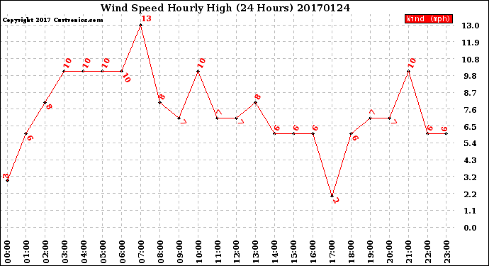 Milwaukee Weather -- 20170124 Wind Speed