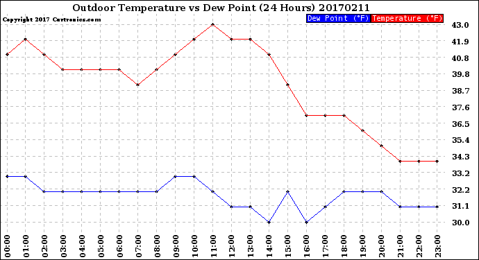 Milwaukee Weather -- 20170211 Outdoor Temperature