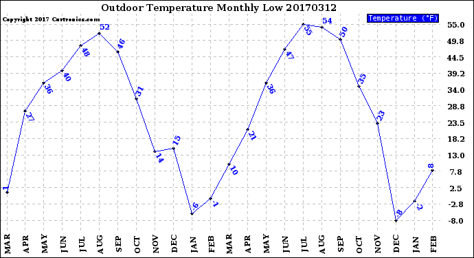 Milwaukee Weather -- 20170312 Outdoor Temperature