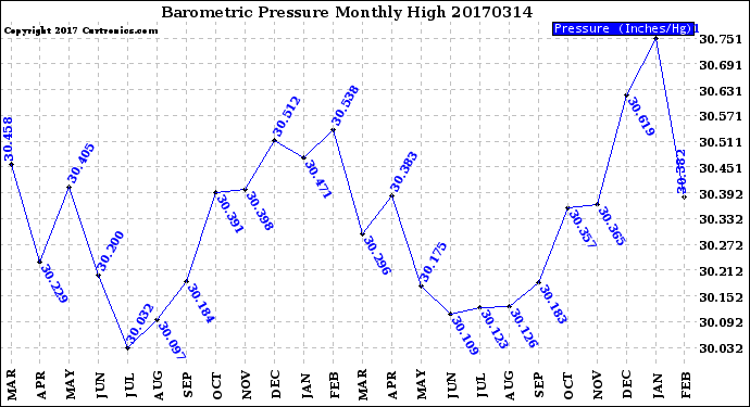 Milwaukee Weather -- 20170314 Barometric Pressure