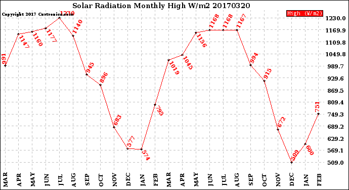 Monthly High W/m2 -- From curtronics.com by Curt Blank