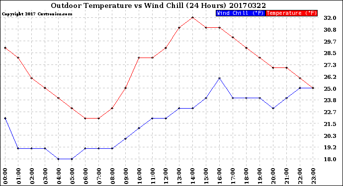 Milwaukee Weather -- 20170322 Outdoor Temperature