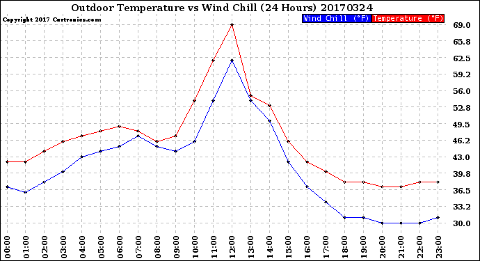 Milwaukee Weather -- 20170324 Outdoor Temperature