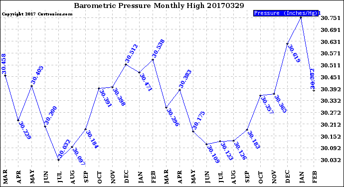 Milwaukee Weather -- 20170329 Barometric Pressure
