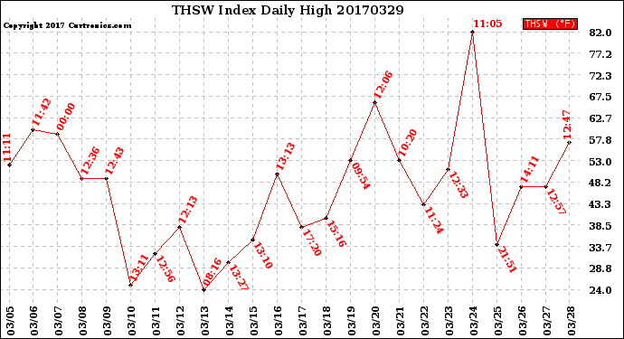 Milwaukee Weather -- 20170329 THSW Index