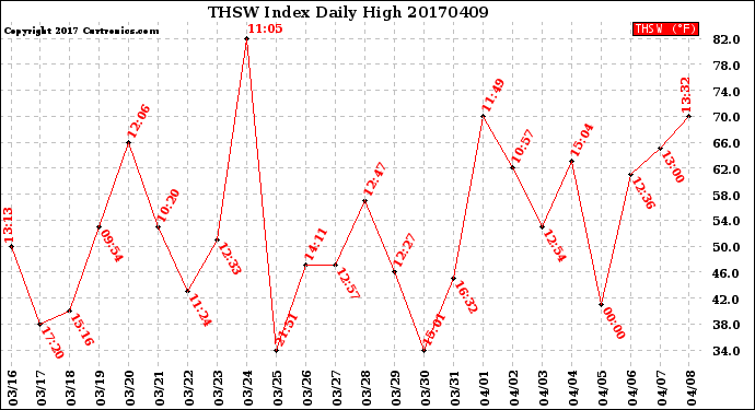 Milwaukee Weather -- 20170409 THSW Index