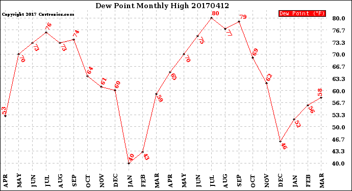 Milwaukee Weather -- 20170412 Dew Point