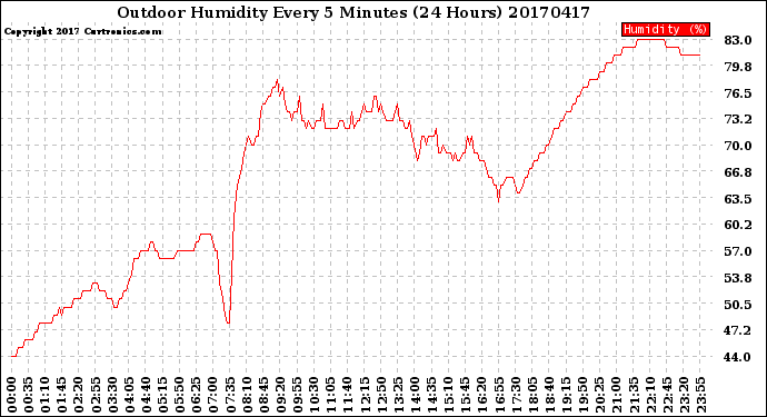 Milwaukee Weather -- 20170417 Outdoor Humidity