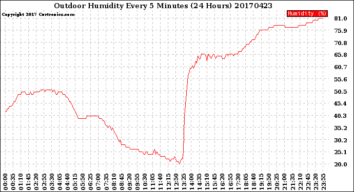 Milwaukee Weather -- 20170423 Outdoor Humidity