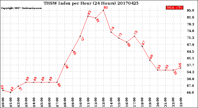 Milwaukee Weather -- 20170425 THSW Index